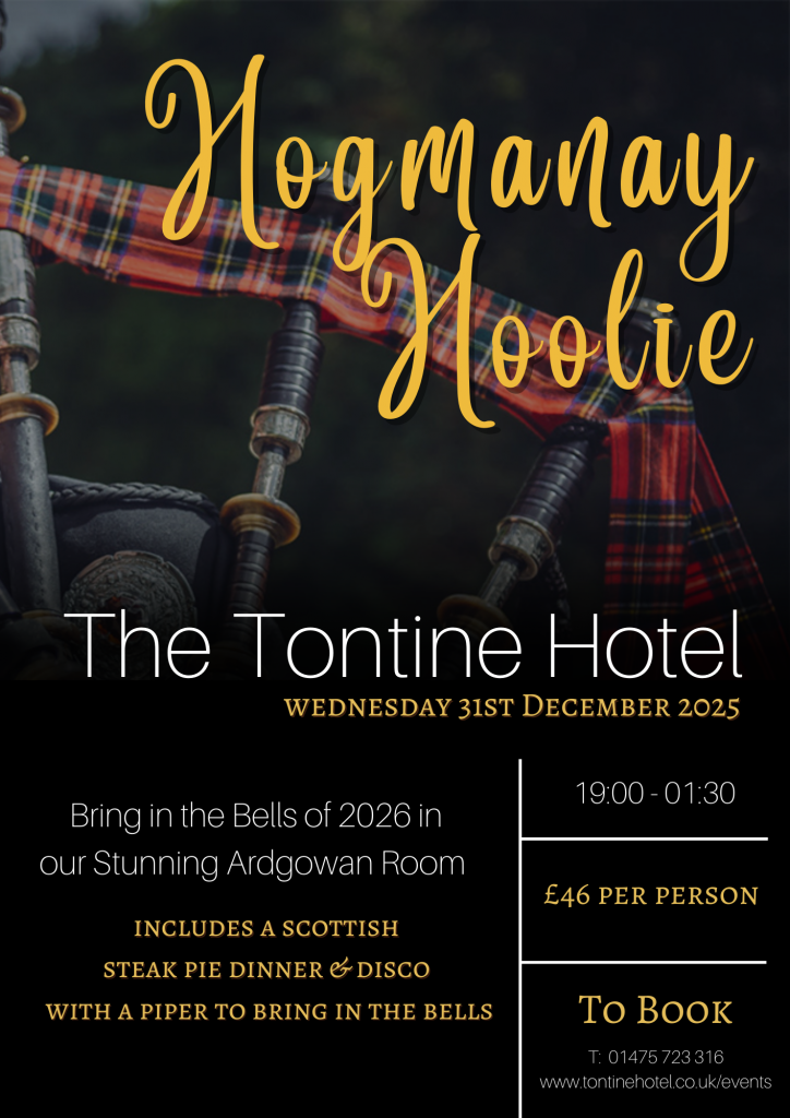 Bring in the bells in our Ardgowan Ballroom, with a traditional Scottish Steak Pie Dinner, disco to dance the night away and piper to bring in 2026.